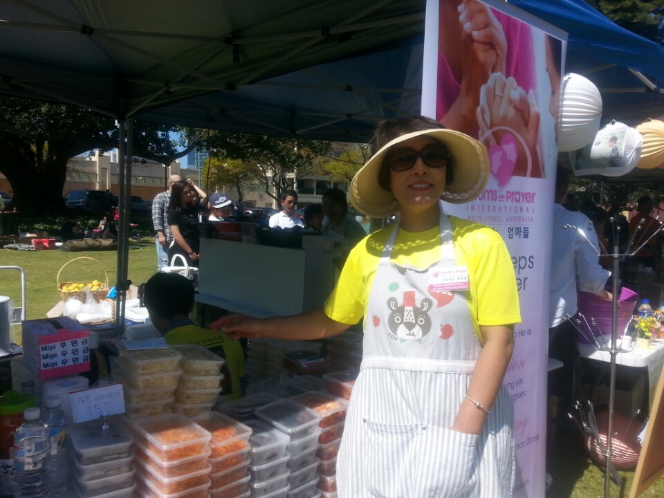 기도하는 엄마들 명찰을 달고 바자회에서 후원금을 마련하기로 ----
