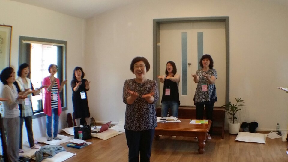 "당신은 누구십니까 --" 라는 노래에 맞추어 참석하신 18명의 사모들이 한분 한 분 환영을 받으며 ---