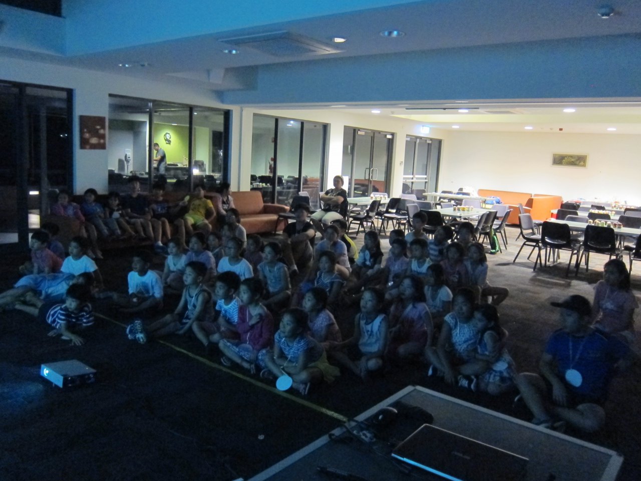 아직도 에너지가 넘치는 친구들은 삼삼오오 모여 앉아 영화도 보고 이야기도 나누었어요~