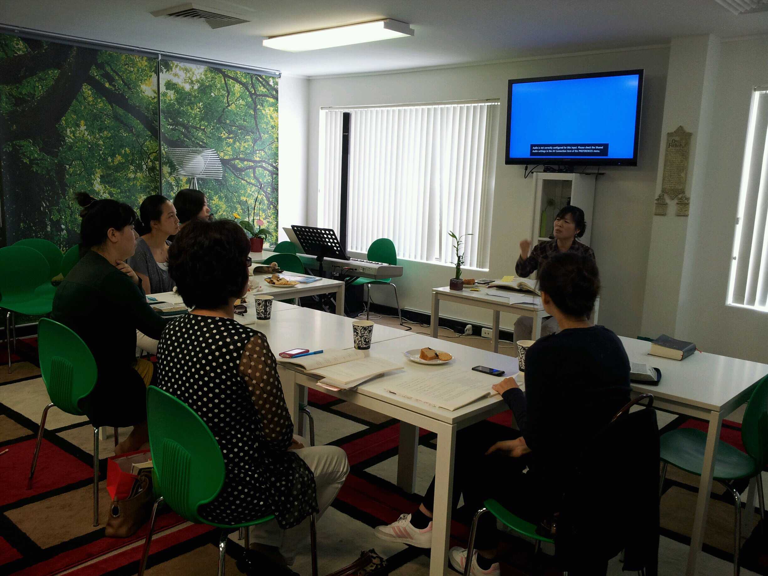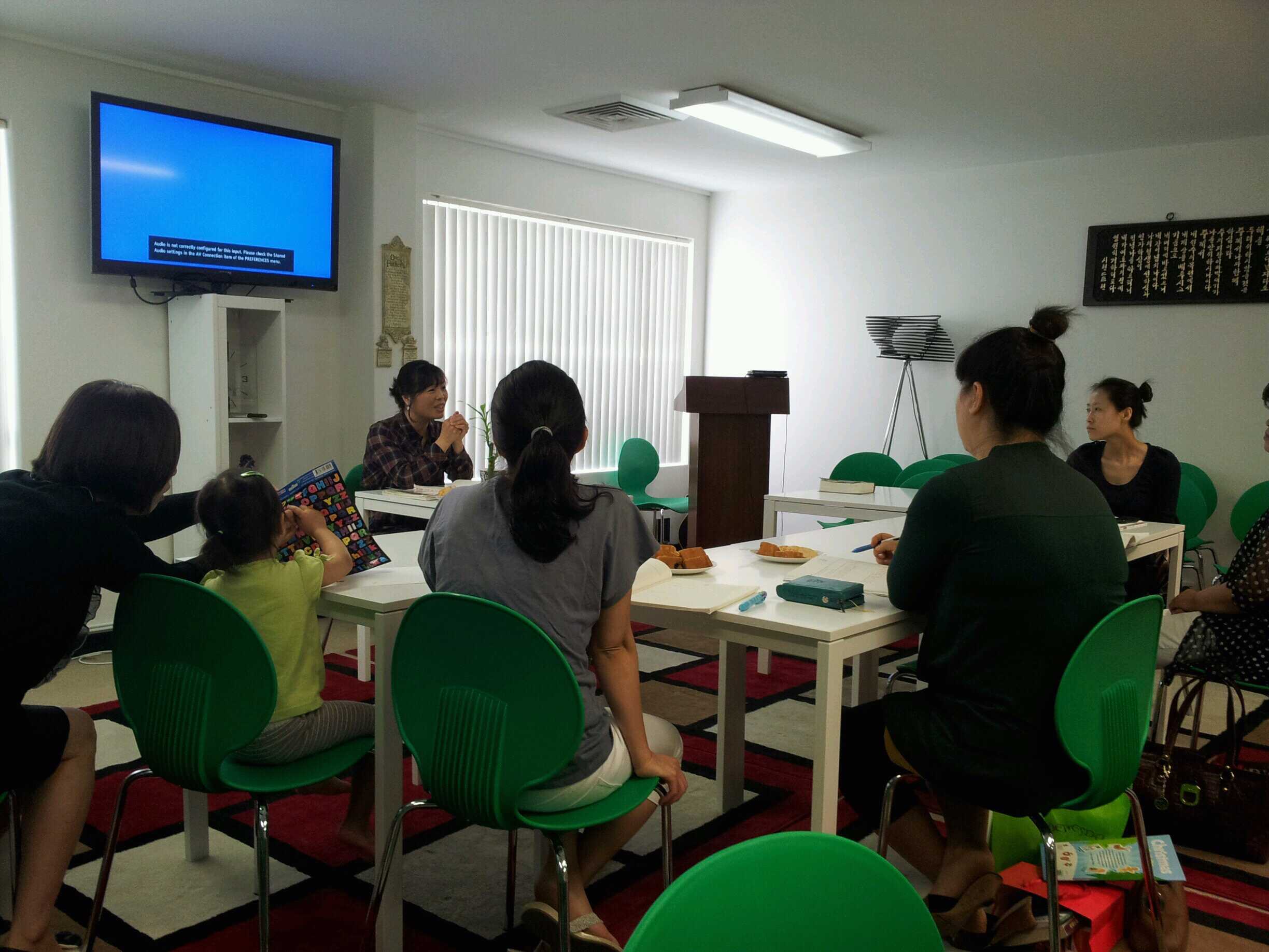 행복의 교회에 모인 6명의 엄마들과 이미 수료를 마치고 기도맘이 된 엄마들이 함께 하는 소박한 자리에서