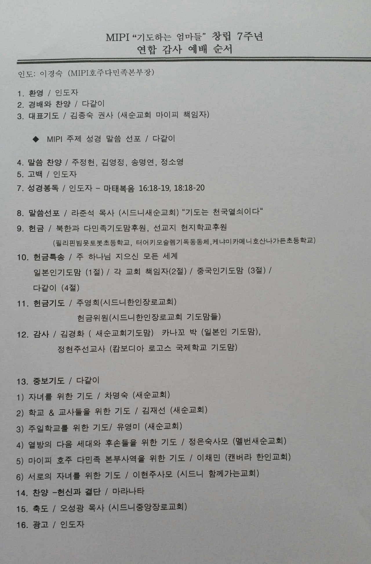 기도맘들께 감사를 드립니다.