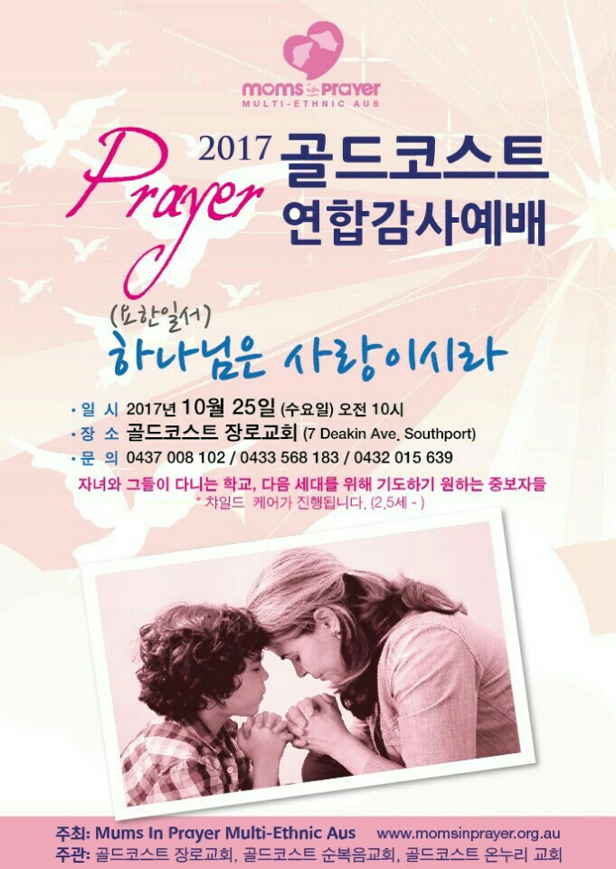 지난 4년동안 골코 땅에 빛과 사랑으로 찾아오셔서 기도맘들과 교회들을 격려하시고 이번에 그 큰 사랑의 확증으로 연합감사예배를 친히 준비하시고 영광받으신 사랑의 하나님 아버지를 찬양합니다..
